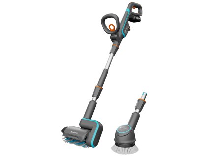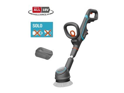 Akumulátorový multi čistič GARDENA AquaBrush Universal Solo na jednoduché čistenie zmiešaných povrchov, ako sú garážové brány a ploty.