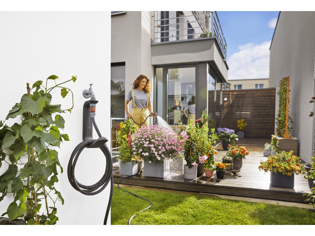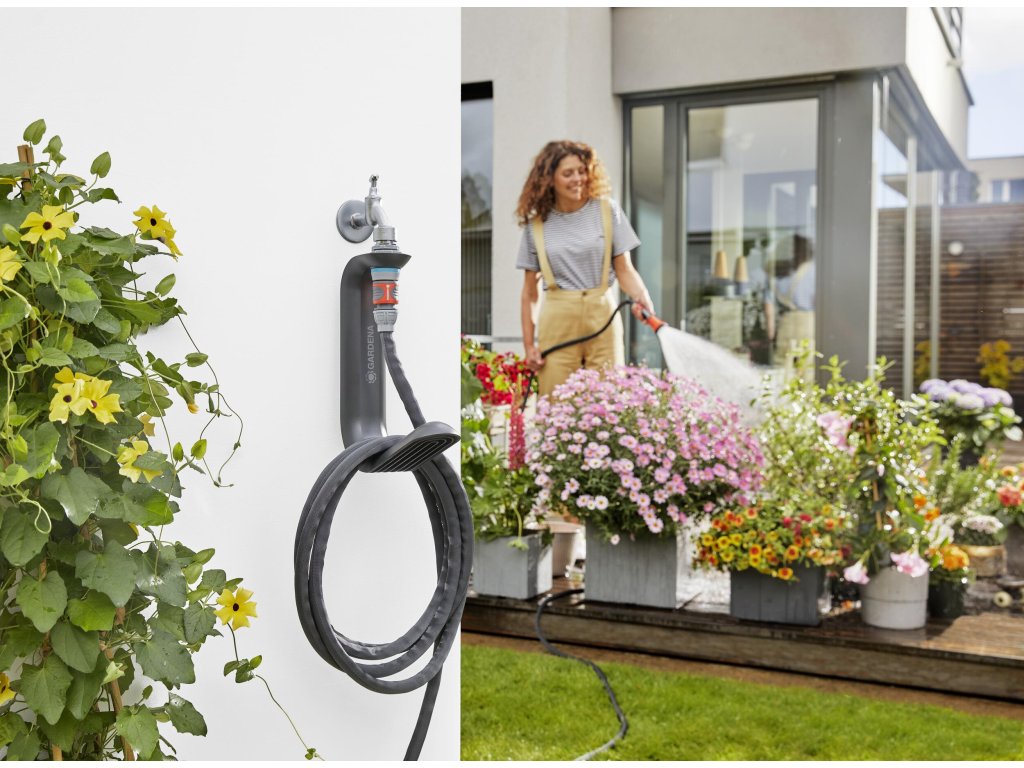 Pribalená 15metrová textilná hadica sa skladá z vnútornej hadice, pokrytej pevnou textilnou tkaninou. To uľahčuje manévrovanie okolo kvetináčov, záhradného nábytku alebo rohov bez zalamovania alebo krútenia. Zavlažovaciu sprchu, ktorá je tiež súčasťou balenia, možno použiť napríklad na zavlažovanie rastlín v kvetináčoch alebo záhonov. Dlhá trvanlivosť je podporená modernou odolnosťou voči UV žiareniu a mrazu a umožňuje celoročné skladovanie vonku. Ak si napriek tomu chcete uskladniť držiak na hadicu Liano™ TapFix s textilnou hadicou Liano ™ počas zimných mesiacov v pivnici alebo na stene garáže, je na zadnej strane držiaka TapFix pripravený otvor na zavesenie. GARDENA ako výrobca vám poskytuje na držiak TapFix záruku v trvaní 5 rokov a na textilnú hadicu Liano™ záruku v trvaní 30 rokov.